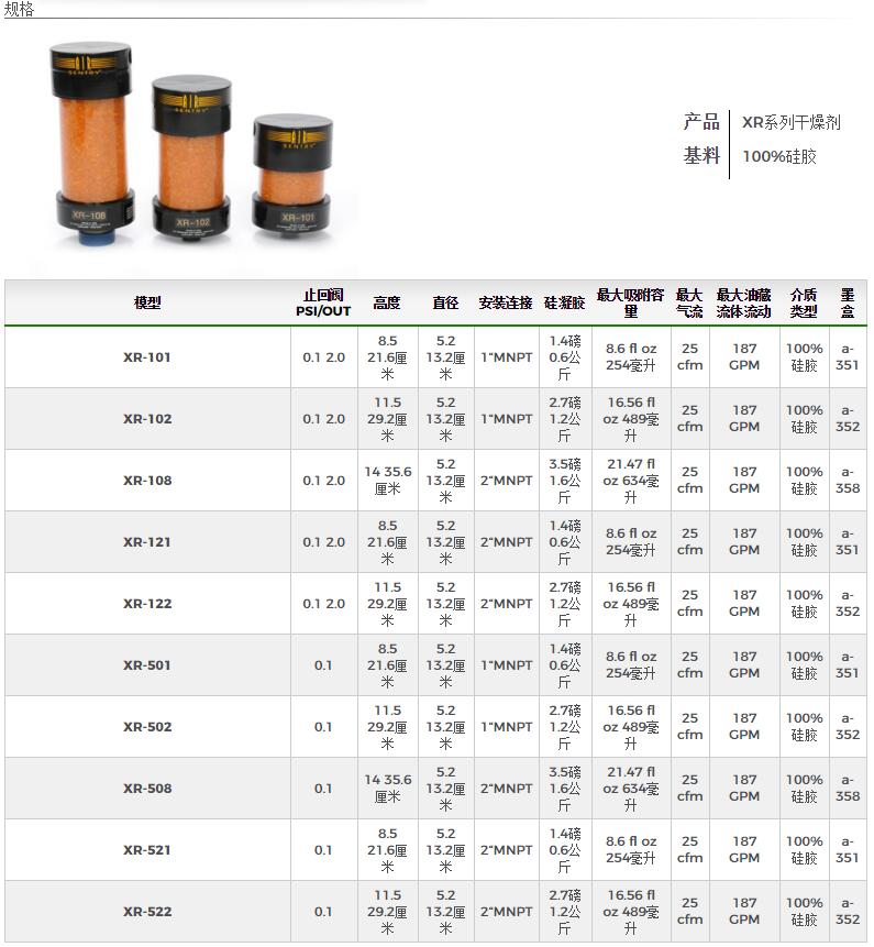 XR系列干燥劑
