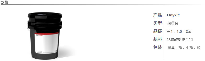 Onyx™是一種極端壓力的磺酸鈣復(fù)合潤(rùn)滑脂,專門設(shè)計(jì)用于需要高抗水性的粗軋和精軋機(jī)上。 增稠劑具有天然的排水能力。 通過添加包括特殊聚合物的防水材料,這已經(jīng)大大增強(qiáng)了。