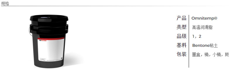 Omnitemp®專門配制成可承受高溫的嚴(yán)格效果,其非熔化基底確保其在其他潤(rùn)滑脂融化和/或用完時(shí)仍能維持使用。 Omnitemp在考慮高溫時(shí)提供無(wú)與倫比的保護(hù); 這對(duì)造紙,玻璃,磚和陶瓷生產(chǎn)以及發(fā)電,金屬生產(chǎn)和加工等行業(yè)都有利。 用于高達(dá)400°F(200°C)的溫度。 包含MoS2。